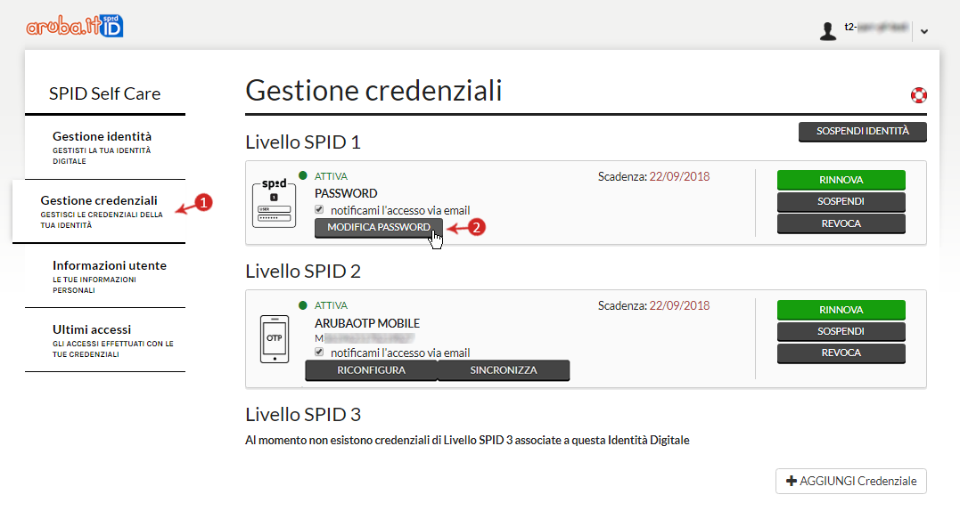 Per modificare la password precedentemente impostata, accedere al "Pannello Self Care SPID" utilizzando la password attualmente in uso, quindi: